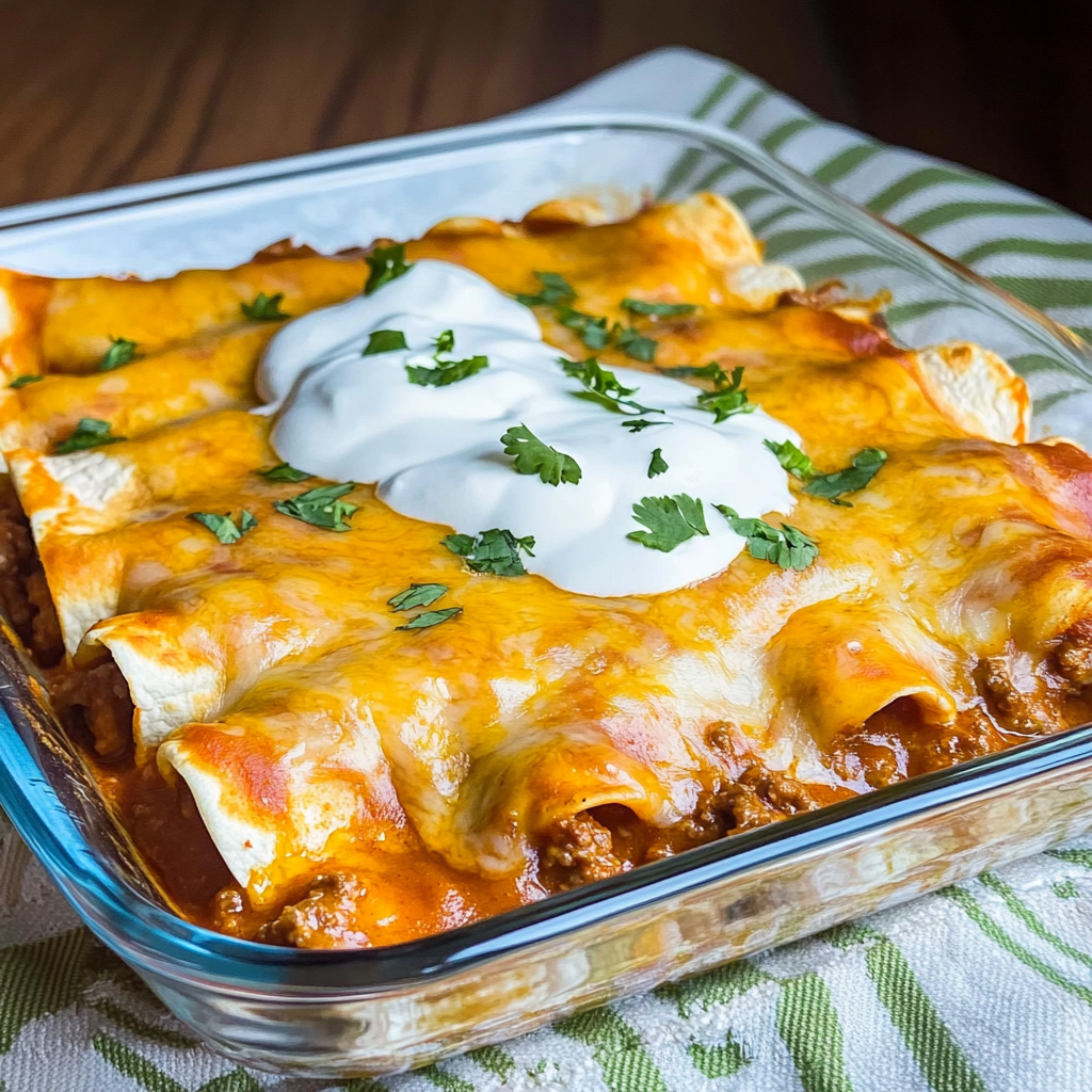 - Cheesy Ground Beef Enchiladas are a crowd-pleaser, bursting with flavor