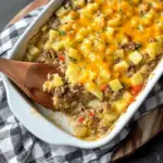 Enjoy your Cheesy Ground Beef & Potato Casserole hot from the oven—it’s comfort food at its finest!