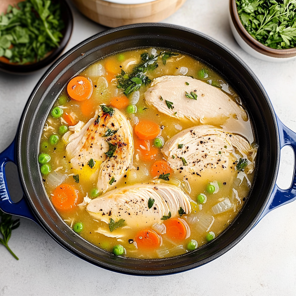 Keywords: For added richness, use bone-in chicken instead of breasts. You can swap vegetables based on what you have on hand or add fresh herbs for enhanced flavor. A splash of lemon juice brightens the soup beautifully.