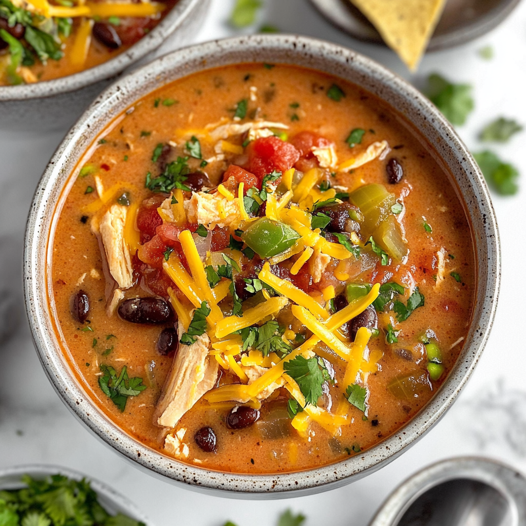 Chicken Taco Soup is a warm, hearty dish bursting with flavors that will delight your taste buds. This easy-to-make recipe combines tender chicken, fresh vegetables, and zesty spices all simmered together for a comforting bowl of goodness. Perfect for cozy nights or gatherings with friends, this soup is sure to become a favorite in your home.