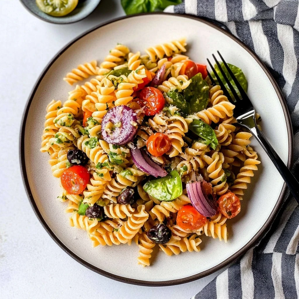 Imagine a vibrant bowl of vegan pasta salad, bursting with colorful cherry tomatoes, crunchy cucumbers, and the enticing aroma of fresh herbs wafting through the air. As you dive in, each bite offers a delightful blend of textures and flavors that dance on your palate, making it the perfect dish for summer picnics or casual gatherings with friends.