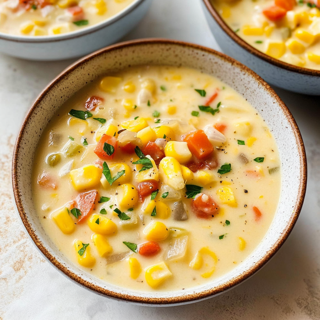 Now you have itβthe ultimate creamy corn chowder that is sure to impress! Serve hot with crusty bread or your favorite toppings like crumbled bacon or fresh herbs for an extra pop of flavor. Enjoy this cozy dish that warms not just your stomach but also your heart!