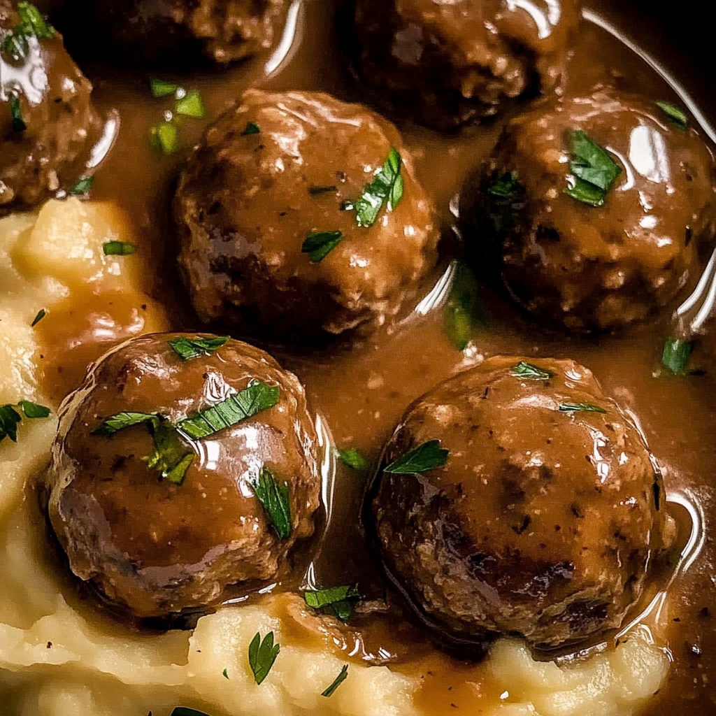 Savor the comforting taste of Salisbury Steak Meatballs served alongside creamy Garlic Herb Mashed Potatoes. This dish brings together savory beef, aromatic herbs, and buttery potatoes, creating a heartwarming meal perfect for family gatherings or cozy evenings at home. Enjoy every bite as you reminisce about joyful memories shared around the dinner table.